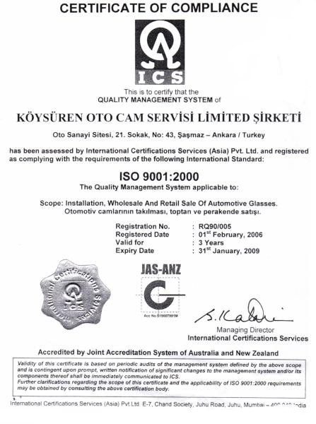 Hizmet Kalitemizi ISO 9001:2000 ile